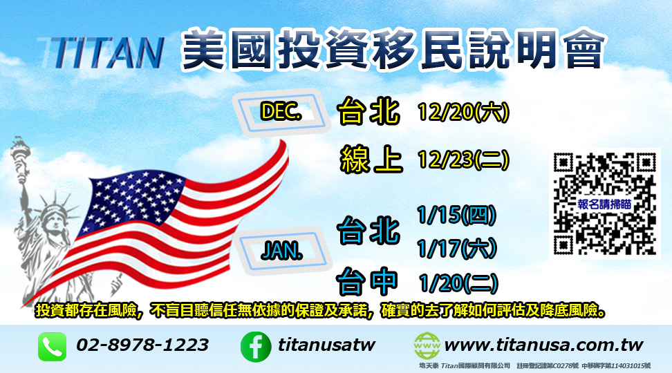 每個月都會舉辦投資移民說明會,歡迎報名參加。有任何疑問歡迎隨時與我們聯繫