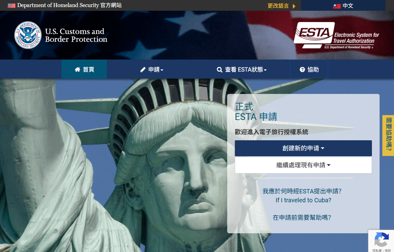esta官網申請網址 https://esta.cbp.dhs.gov/