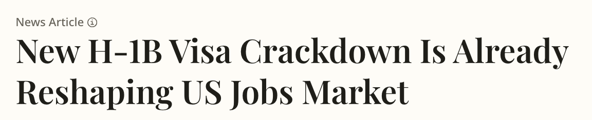 值得注意的是,計劃宣布僅兩天後,白宮又推出H-1B簽證申請費10萬美元的新規,旨在遏制外包公司批量遞件。