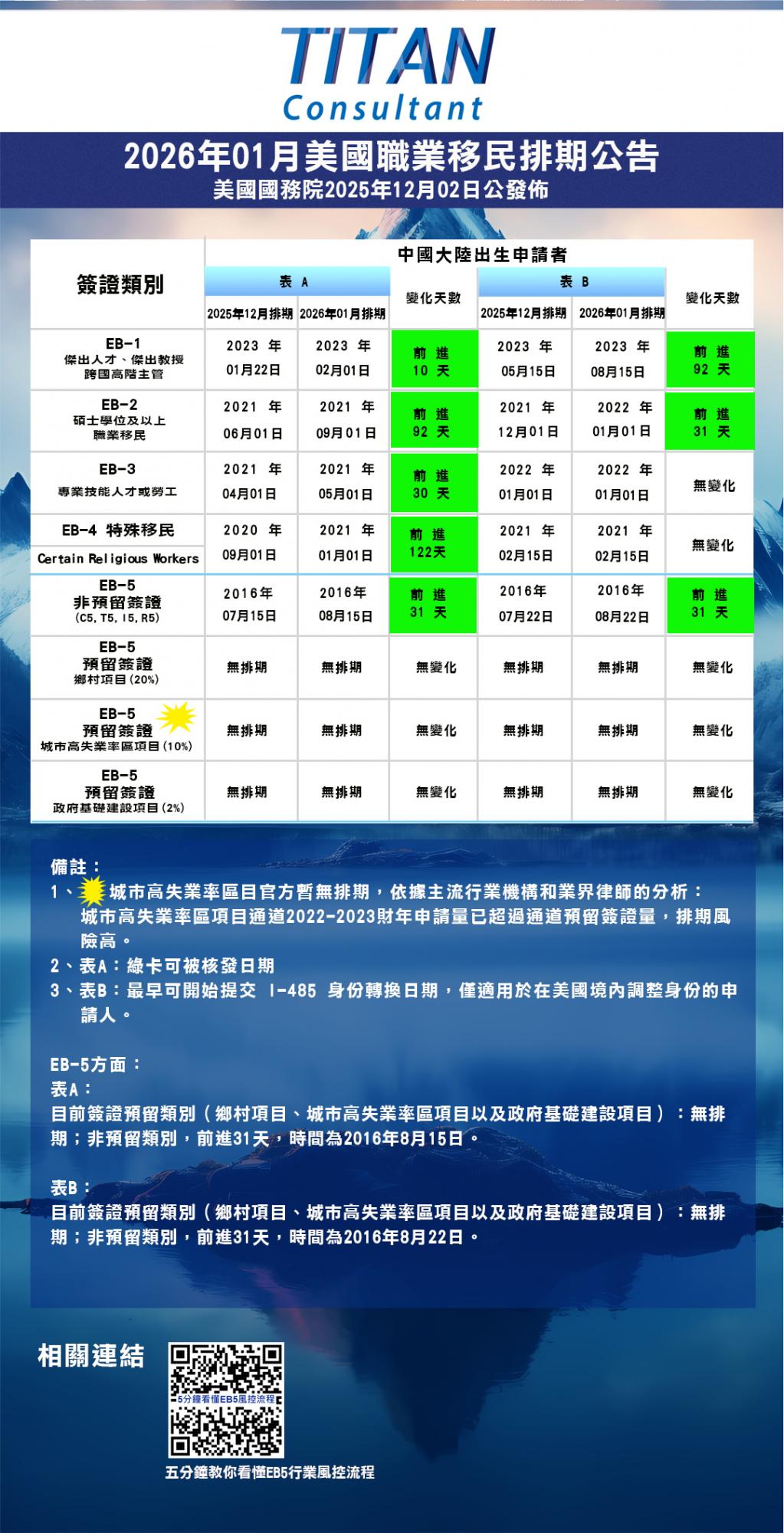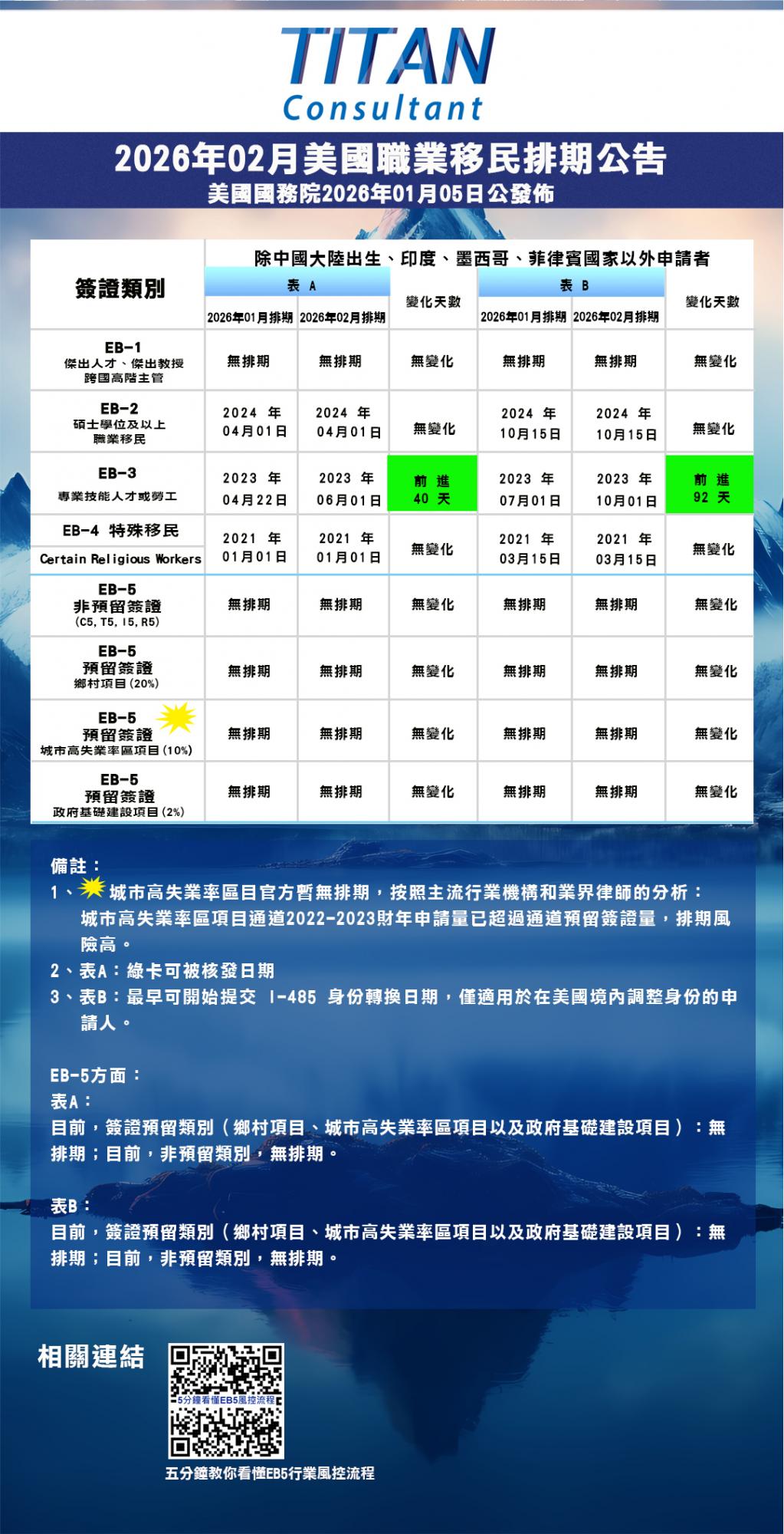 美國國務院公佈了2026年2月簽證排期表